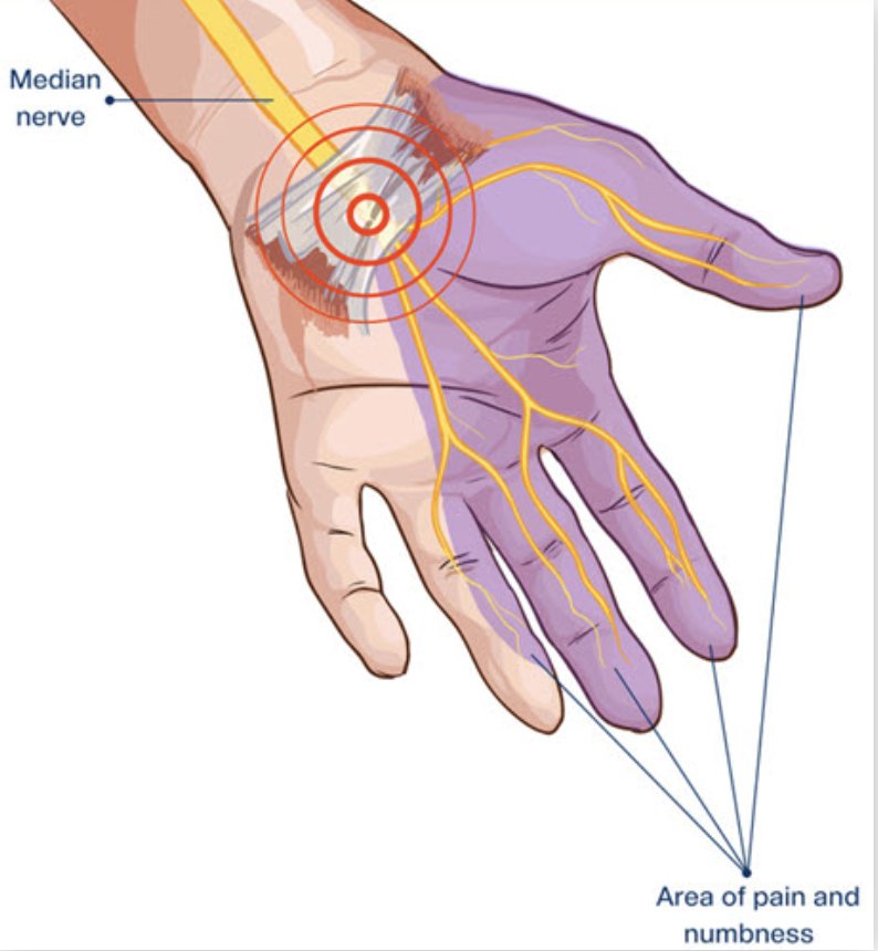 - Karpal Tünel Sendromu dahil olmak üzere bilek, el ve dirsek tendinitleri; el ve bileğini sürekli ve tekrarlayan hareketlerle çalıştıran kişilerde yaygın bir şikayettir. Bilek eklemi bükülüp dönerken bir şeyi tekrar tekrar kavramayı gerektiren bir spor yapan her sporcu, karpal tünel sendromu geliştirme riski altındadır. Karpal tünel sendromunun görülme sıklığının yüksek olduğu sporlar arasında çoğu raket sporu, hentbol, yüzme, vücut geliştirme, kürek, golf, okçuluk ve kaya tırmanışı bulunur. Karpal tünel sendromu, ön koldan ele kadar uzanan median sinirin bilek bölgesinde sıkışmasıyla oluşan bir kompresyon nöropatisidir. Bu sıkışma, başparmağın ve ilk üç parmağın yanı sıra avuç içinin büyük bir kısmının uyuşabileceği ve sıklıkla uyuştuğu anlamına gelir. Median sinir ayrıca, Thenar kasları (başparmağın tabanındaki yumru) aracılığıyla başparmağa sınırlı hareket sağlar ve bu durum genellikle başparmağın kısmi felce uğramasına neden olur.